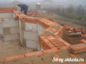 Процесс возведения цоколя из блоков и кирпича