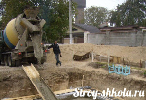 Процесс заливки бетона